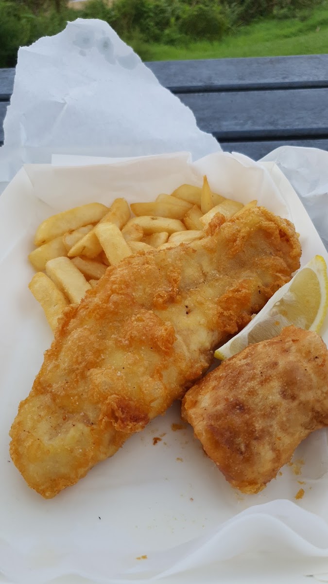 We purchased fish and chips for my family of four. It was delicious! The fish was a little darker than usual but so well cooked and fresh. We ordered 3 pieces of fish, 12 calamari and a large chips. While delicious, we couldn't finish it all because the servings were so large. Highly recommended!