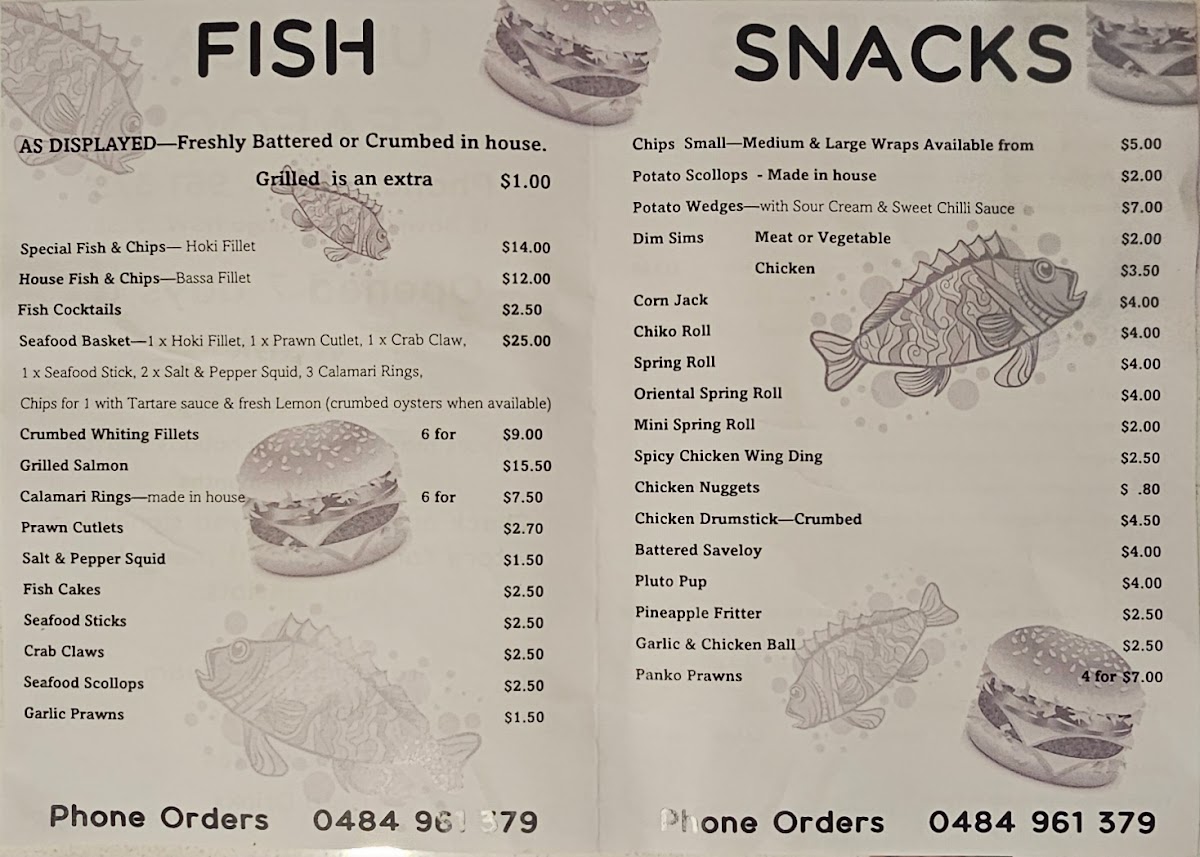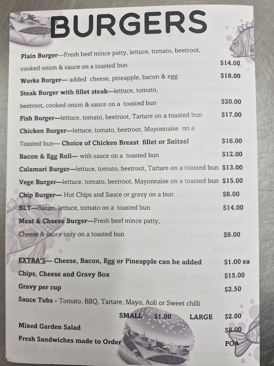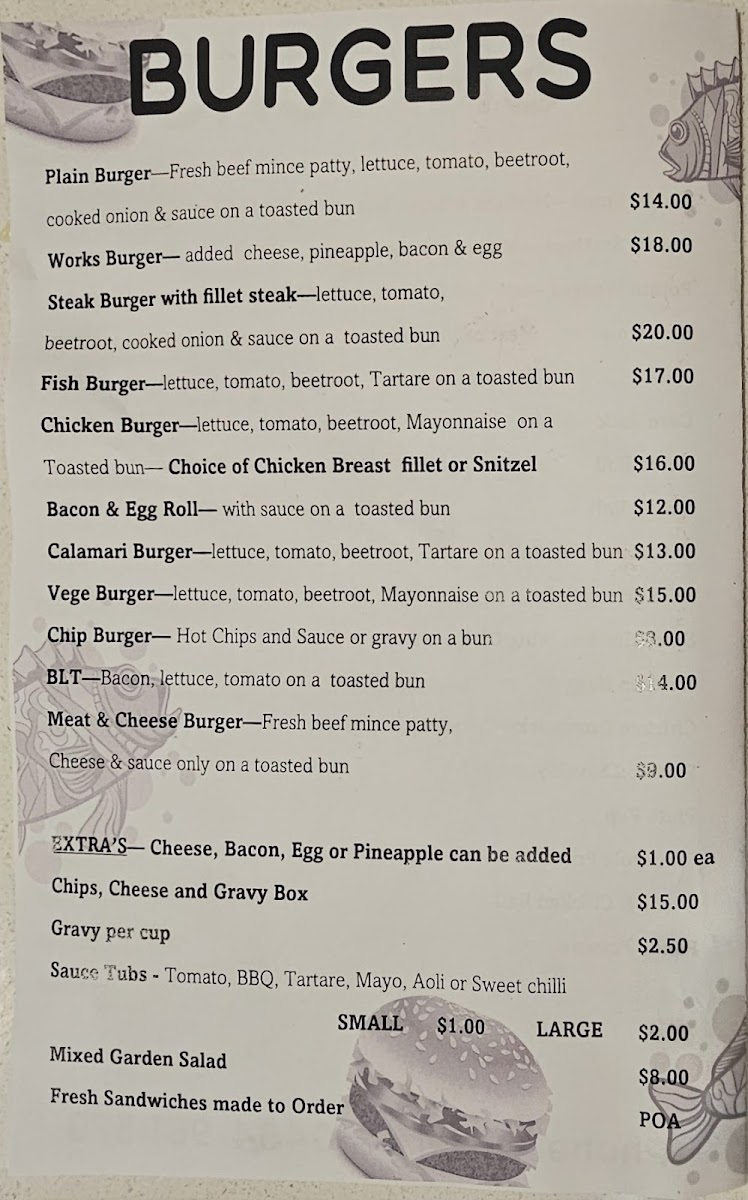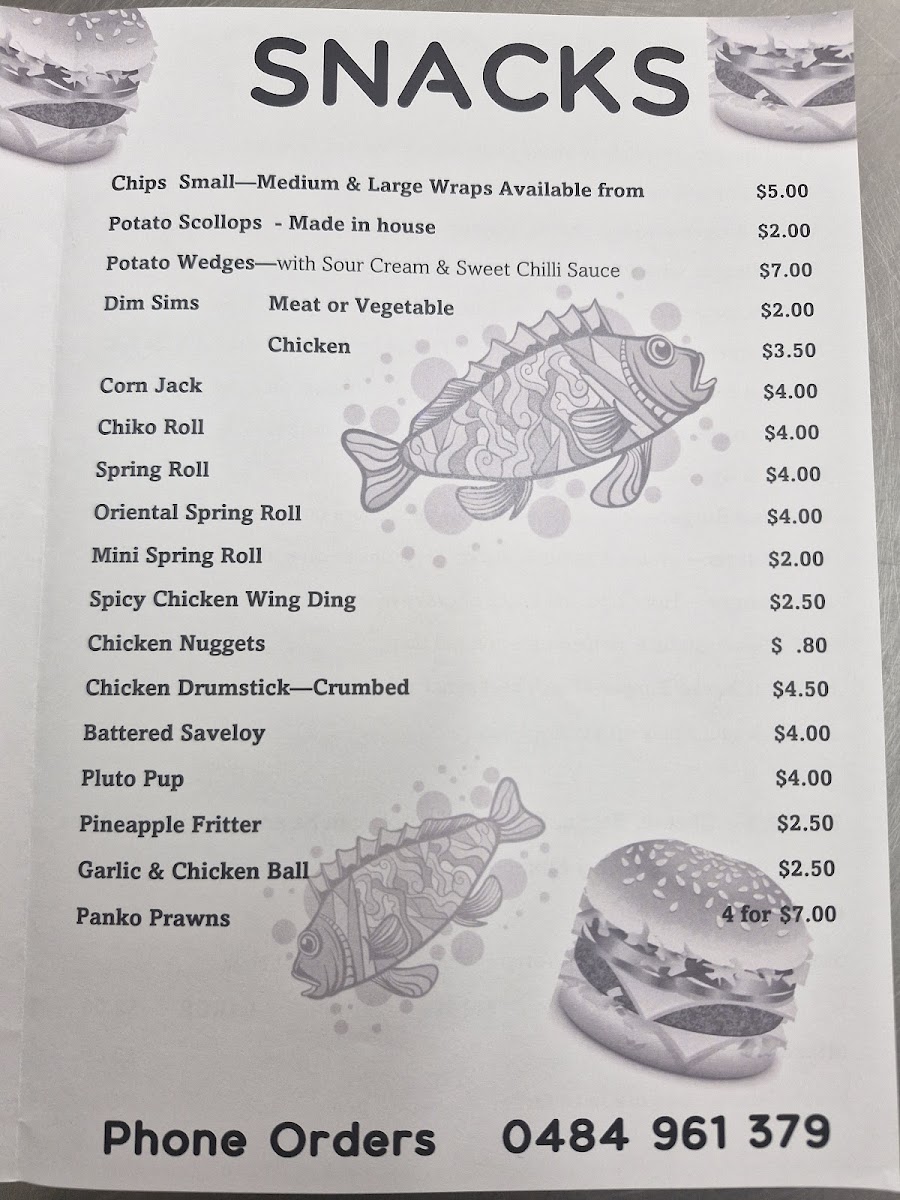 The menu at Urunga Seafood & Takeaway offers a straightforward selection of casual, comforting dishes perfect for a relaxed meal close to the water. With a focus on classic fish and chips alongside hearty chicken and burger options, it caters well to those looking for satisfying, familiar flavors without fuss.
